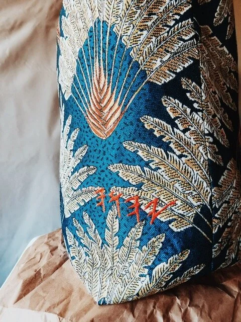 Material: 100% French embroidered jacquard canvas exterior; 100% coral linen interior